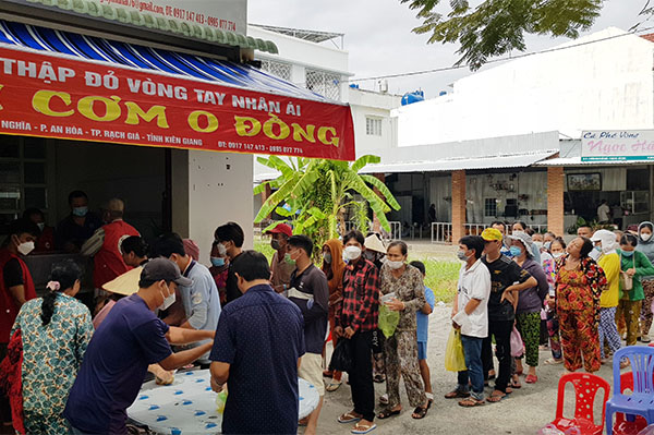 Hội Chữ thập đỏ vòng tay nhân ái đã hoạt động từ năm 2011, ở tại thị trấn Minh Lương huyện Châu Thành, Hội có trên 15 thành viên, hoạt động với mục đích hỗ trợ bệnh nhân nghèo, người khó khăn cơ nhỡ, chạy xem ôm, bán vé số, học sinh, sinh viên… Kinh phí hoạt động của Hội từ nguồn xã hội hóa. Đặc biệt, trong hai năm do ảnh hưởng của dịch bệnh Covid-19, Hội đã phục vụ cho người nghèo nhiều suất ăn miễn phí để vượt qua khó khăn. Giờ đây địa chỉ quán cơm 0 đồng đã trở thành thân quen với người nghèo.