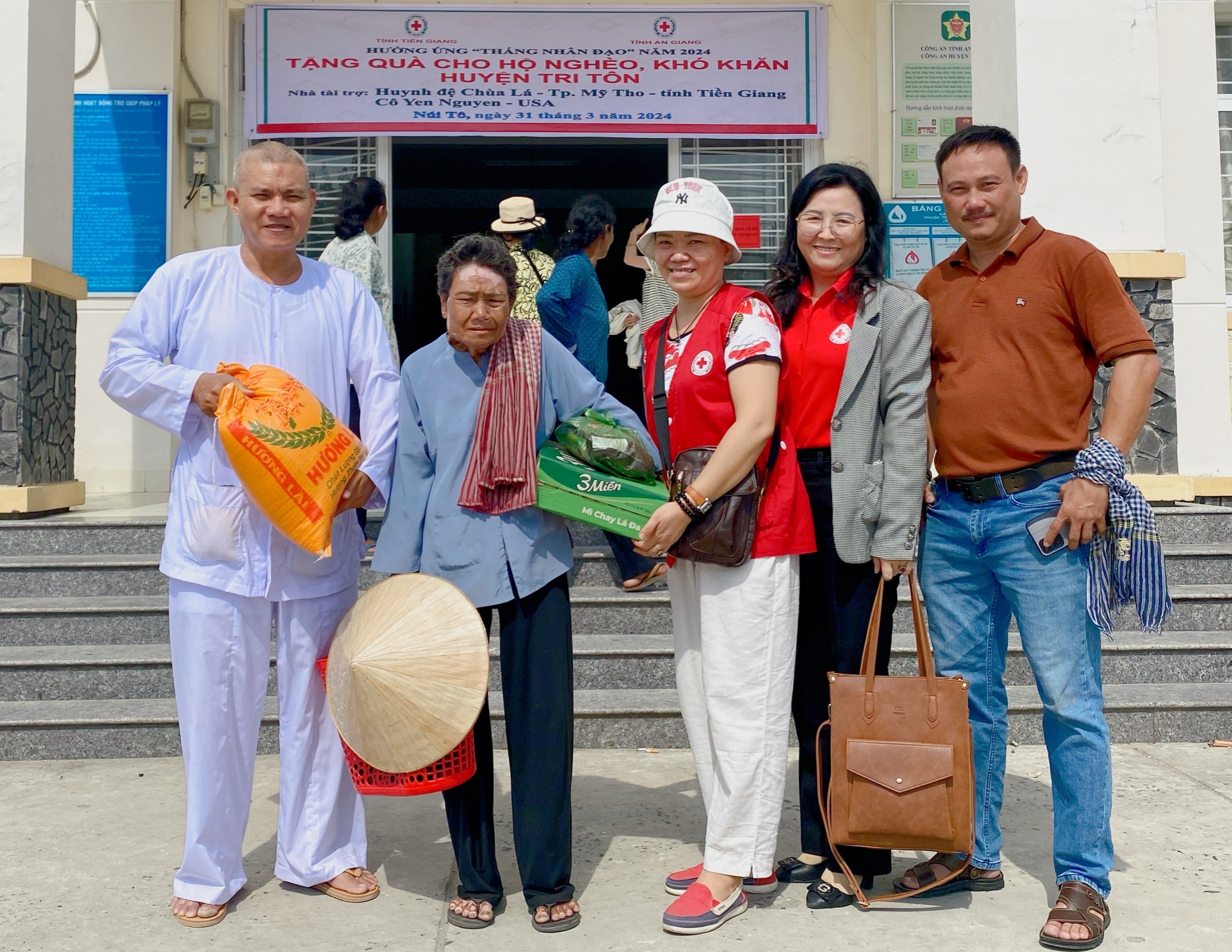 Phát biểu tại buổi trao quà, bà Tăng Tiểu Bình, Phó Chủ tịch Hội Chữ thập đỏ tỉnh An Giang đã gửi lời động viên, thăm hỏi và chúc mừng năm mới đến các gia đình đồng bào dân tộc Khmer luôn vui tươi, mạnh khỏe, hạnh phúc nhân dịp Tết Chôl Chnam Thmây cổ truyền. Đồng thời bà kêu gọi Quý Mạnh Thường Quân, Nhà hảo tâm, các đối tác tiếp tục đồng hành với Hội Chữ thập đỏ thực hiện nhiều hoạt động ý nghĩa mang nguồn lợi về vật chất và tinh thần cho người dân.