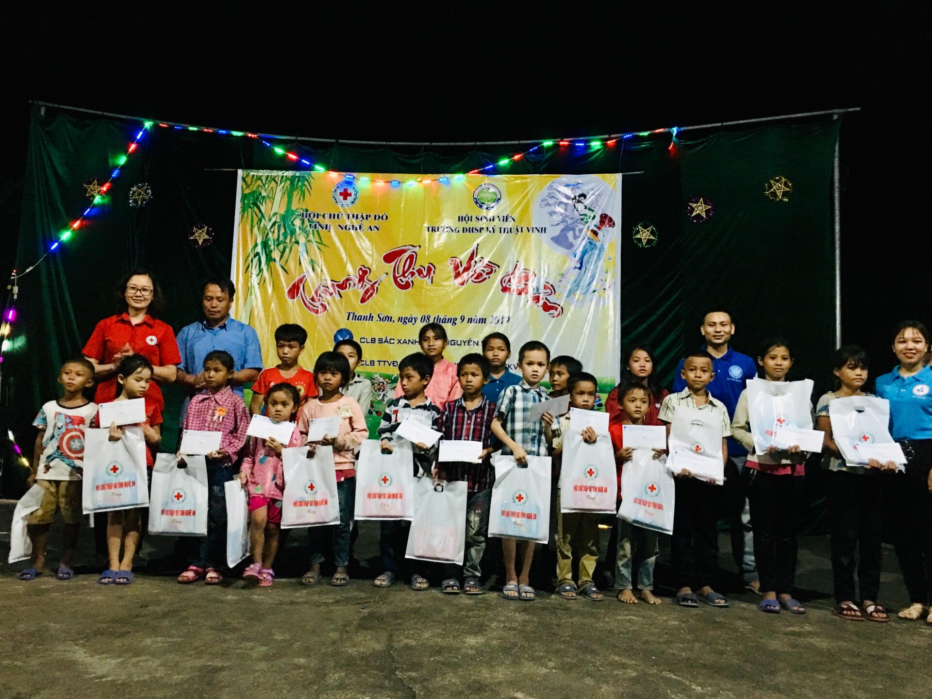 Nhân dịp Tết Trung thu đến gần, tối ngày 8/9, Hội Chữ thập đỏ tỉnh Nghệ An phối hợp với 2 Câu lạc bộ của Trường Đại học sư phạm Kỹ thuật Vinh tổ chức Chương trình “Trung thu về bản” cho các cháu thiếu niên, nhi đồng xã Thanh Sơn, huyện Thanh Chương, tỉnh…