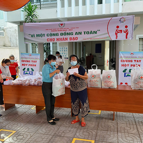 Để bảo đảm an toàn trong mùa dịch Covid-19, Hội Chữ thập đỏ thành phố Vũng Tàu chia ra từng khung giờ đối với các xã, phường, không để tập trung quá đông người đến cùng một thời điểm, mọi người tham gia phiên chợ đều phải đeo khẩu trang, đồng thời tổ chức thực hiện giãn cách. Hội Chữ thập đỏ tỉnh bố trí dung dịch rửa tay sát khuẩn và tiến hành đo thân nhiệt cho những người tham gia phiên Chợ Nhân đạo. Tổng kinh phí tổ chức phiên chợ khoảng hơn 100 triệu đồng. Nguồn kinh phí này từ sự hỗ trợ của Trung ương Hội Chữ thập đỏ Việt Nam, quỹ Nhân đạo của Hội Chữ thập đỏ tỉnh, các nhà hào tâm thành phố Vũng Tàu, thành phố Hải Phòng và chùa Khánh Hưng, huyện Long Điền (Bà Rịa – Vũng Tàu).