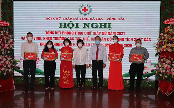 Hội phối hợp với Trung tâm truyền máu Chợ Rẫy tổ chức tiếp nhận được 19.694 đơn vị máu 350ml trị giá 15 tỷ 105 triệu đồng, số lượng đơn vị máu quy đổi là 27.572/23.500 đơn vị máu 250ml, đạt 117,3% chỉ tiêu năm 2021. Thực hiện chính sách quan tâm chăm sóc sức khỏe cho người hiến máu tình nguyện, tỉnh Hội đã mua và cấp 1.457 thẻ bảo hiểm y tế cho người hiến máu 3 lần trong năm 2021. Ngoài ra, Hội Chữ thập đỏ cấp huyện 13 thẻ, tổng trị giá 1 tỷ 183 triệu đồng.