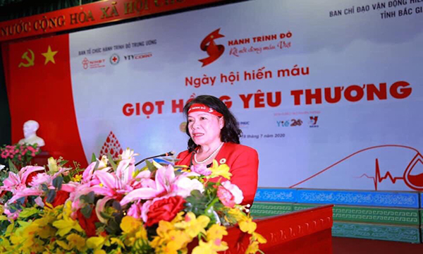 Phát biểu tại lễ khai mạc, PGS.TS Nguyễn Thị Xuân Thu – Chủ tịch Hội Chữ thập đỏ Việt Nam – ghi nhận, đánh giá cao sự quan tâm của cấp ủy, chính quyền, cơ quan, đơn vị, Ban Chỉ đạo hiến máu các cấp trong công tác lãnh đạo, chỉ đạo tuyên truyền, vận động đối với các phong trào, chương trình HMTN thời gian qua.