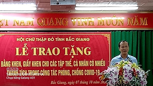 Ngày 07/10/2021, Hội Chữ thập đỏ tỉnh Bắc Giang tổ chức lễ trao tặng Bằng khen, Giấy khen cho các tập thể, cá nhân có thành tích xuất sắc trong công tác phòng, chống Covid-19. Đồng chí Mai Sơn – Phó chủ tịch thường trực UBND tỉnh tham dự và chỉ đạo hội nghị. Dự hội nghị còn có các đồng chí lãnh đạo MTTQ tỉnh, Ban Dân vận Tỉnh ủy, Hội Chữ thập đỏ tỉnh .