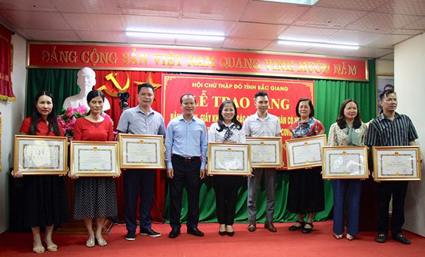 Với những kết quả hoạt động thiết thực và hiệu quả, Hội Chữ thập đỏ tỉnh Bắc Giang đã được Trung ương Hội Chữ thập đỏ Việt Nam và Thường trực Tỉnh uỷ, UBND tỉnh đánh giá cao; tập thể cơ quan Hội được Chủ tịch UBND tỉnh tặng Bằng khen, 12 tập thể và 72 cá nhân đã được khen thưởng do có thành tích xuất sắc trong công tác phòng chống dịch Covid 19.