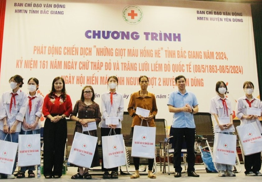 Dịp này, Hội Chữ thập đỏ tỉnh trao bổ sung trang thiết bị y tế bổ sung cho Trạm/điểm sơ cấp cứu trong toàn tỉnh năm 2024; trao kinh phí hỗ trợ hàng tháng cho 10 hộ gia đình có hoàn cảnh đặc biệt khó khăn huyện Yên Dũng; trao tặng 4.800 hộp sữa tươi cho các cháu học sinh trường Mầm non, Tiểu học trên địa bàn huyện Yên Dũng. Tổng giá trị các phần quà trao tại Chương trình là gần 100 triệu đồng.