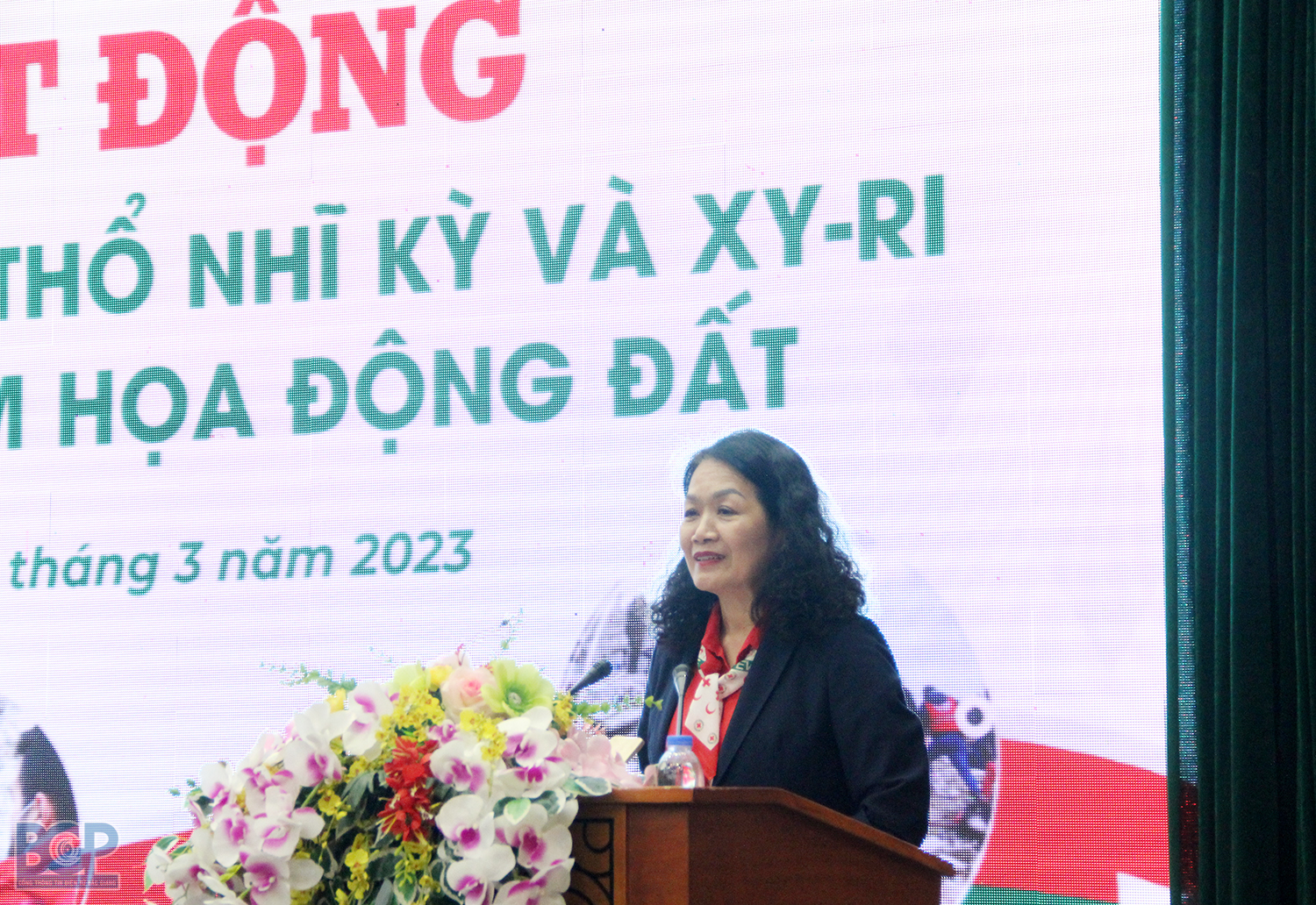 Phát biểu tại buổi lễ, Chủ tịch Trung ương Hội Chữ thập đỏ Việt Nam Bùi Thị Hòa nhấn mạnh đây là hành động thiết thực triển khai hoạt động “Tháng nhân đạo năm 2023” nhằm nâng cao nhận thức, trách nhiệm, phát huy truyền thống nhân ái, tình thương yêu con người, tinh thần đoàn kết của dân tộc Việt Nam với quốc tế. Triển khai có hiệu quả các hoạt động vận động trợ giúp nhân đạo, thể hiện sự sẻ chia của đất nước, người dân Việt Nam dành cho Nhân dân Thổ Nhĩ Kỳ và Xy-ri. Đồng thời là hoạt động nhằm tiếp nối truyền thống ủng hộ lẫn nhau của các dân tộc trong những lúc khó khăn, hoạn nạn, phù hợp các quy phạm đạo đức và nguyên tắc hoạt động cơ bản của Hội Chữ thập đỏ Việt Nam và Phong trào Chữ thập đỏ, Trăng lưỡi liềm đỏ Quốc tế, thể hiện rõ tinh thần đối ngoại Nhân dân trong hợp tác quốc tế.