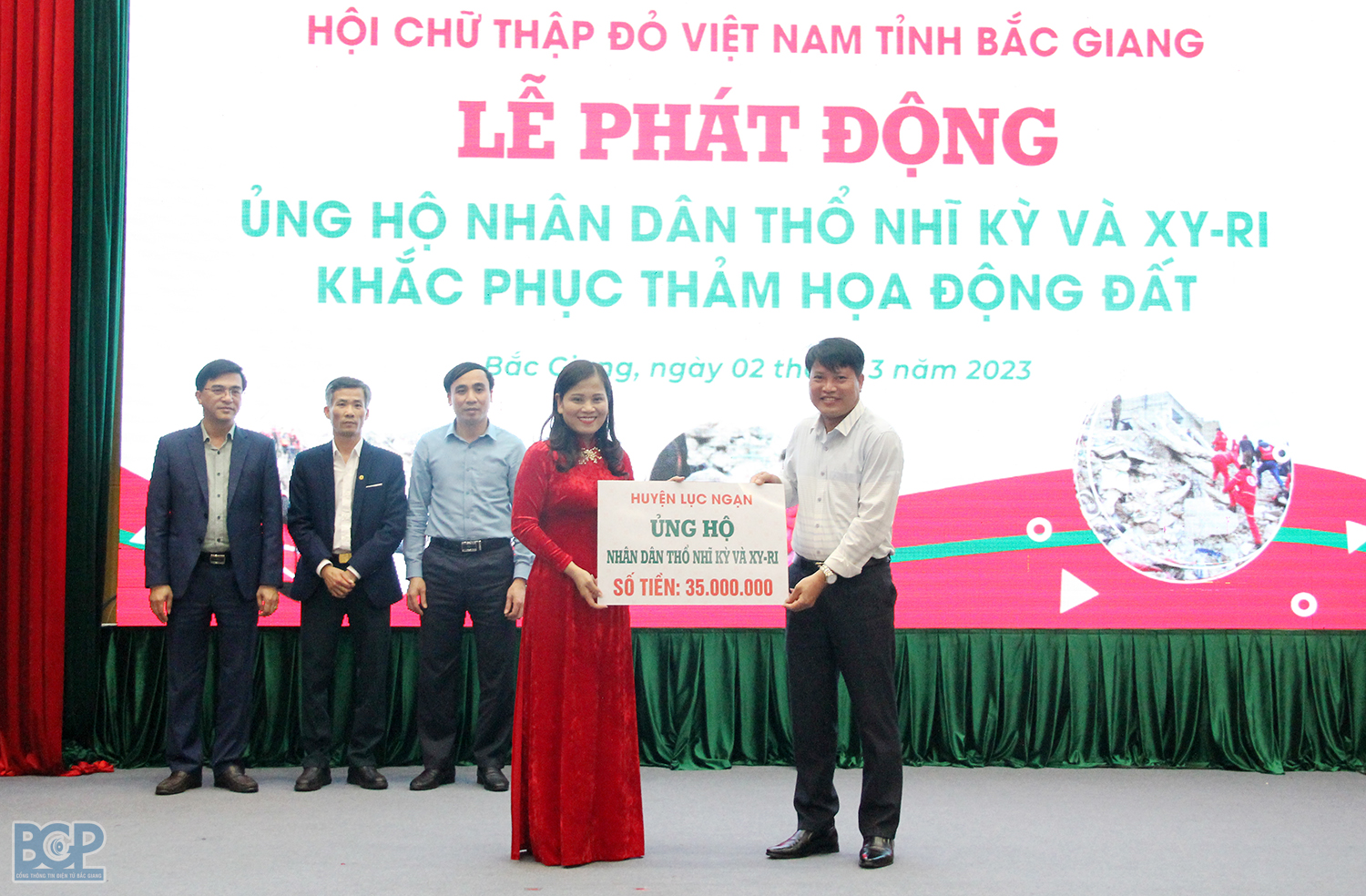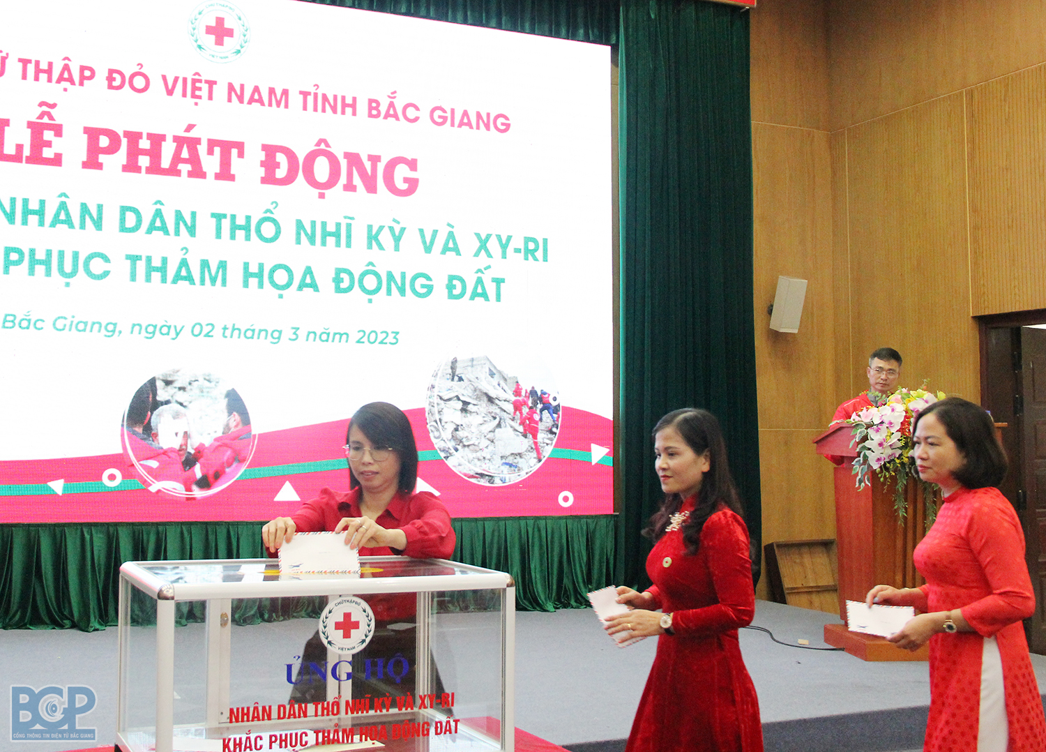 Tại Lễ phát động, Chủ tịch Hội Chữ thập đỏ tỉnh Lê Thị Duyên kêu gọi cán bộ, công chức, viên chức, người lao động các sở, ban, ngành, Mặt trận Tổ quốc, hội, đoàn thể, các tổ chức, đơn vị, doanh nghiệp, các tầng lớp Nhân dân trên địa bàn tỉnh Bắc Giang cùng chung tay ủng hộ, trợ giúp nhân dân Thổ Nhĩ Kỳ và Xy-ri sớm vượt qua khó khăn, khắc phục thảm họa động đất.