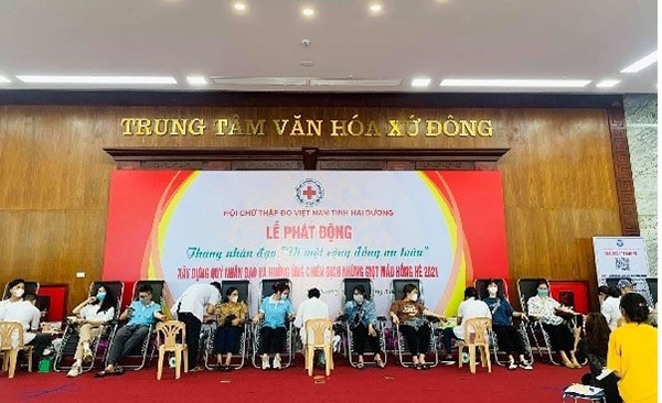 Giảng viên, sinh viên Trường Đại học Hải Dương tham gia hiến máu trong lễ phát động Chiến dịch “Những giọt máu hồng – hè “ 2021 tại Hải Dương ngày 6/5/2021.