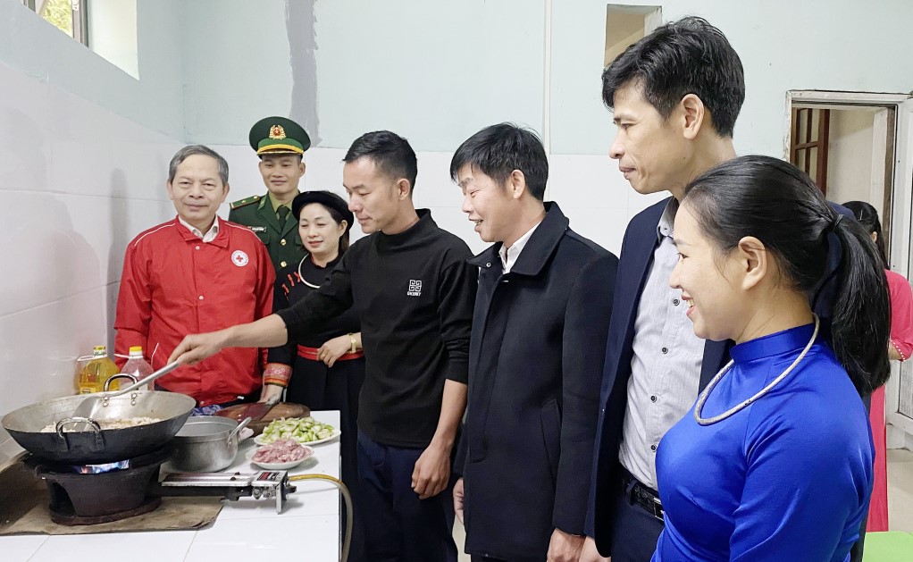 Việc hoàn thiện đưa vào sử dụng công trình bếp ăn bán trú đã đảm bảo bữa ăn hợp vệ sinh an toàn thực phẩm, đủ dinh dưỡng để dạy và học tốt hơn cho cán bộ, giáo viên, nhân viên cấp dưỡng cùng 22 học sinh thôn Cao Sơn.