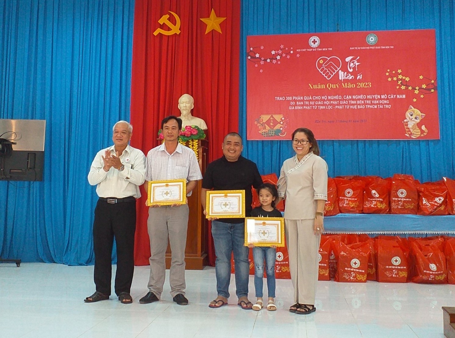 Đến tham dự buổi lễ có bà Hồ Thị Hoàng Yến – Phó Bí thư thường trực Tỉnh ủy, Chủ tịch Hội đồng nhân dân tỉnh, Chủ tịch danh dự Hội Chữ thập đỏ tỉnh; ông Võ Văn Hoanh – Chủ tịch Hội Chữ thập đỏ tỉnh; Đại Đức Thích Trí Thuận – Phó Trưởng Ban kiêm Chánh Thư ký Ban Trị sự Giáo Hội Phật giáo tỉnh.