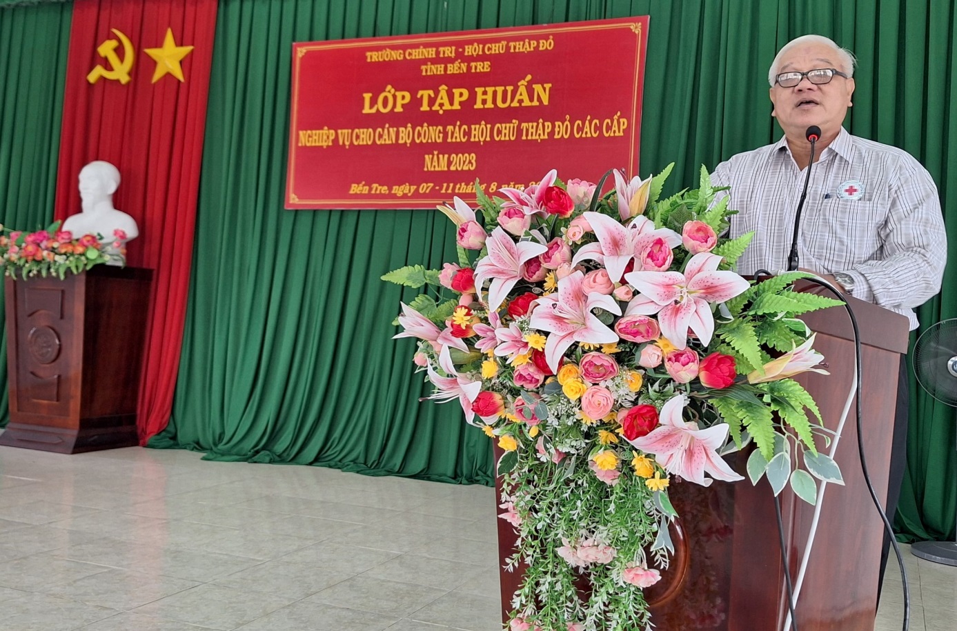 Phát biểu bế giảng lớp tập huấn, ông Võ Văn Hoanh – Chủ tịch tỉnh Hội Chữ thập đỏ tỉnh Bến Tre thay mặt Hội Chữ thập đỏ tỉnh trân trọng gửi lời cảm ơn đến Trường Chính trị tỉnh đã quan tâm, phối hợp và tạo điều kiện tổ chức lớp tập huấn về nghiệp vụ công tác Hội; chân thành cảm ơn sự hỗ trợ giảng dạy của các báo cáo viên đã trang bị cho các học viên có thêm nhiều kiến thức, kĩ năng quan trọng trong hoạt động công tác Hội. Ông Võ Văn Hoanh cũng ghi nhận sự tham gia học tập nghiêm túc và nhiệt tình của các học viên, rất mong các học viên vận dụng nội dung thực tế đã học và áp dụng hiệu quả hoạt động Hội Chữ thập đỏ trong thực tiễn nhằm mang lại hiệu quả cao.