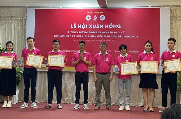 Nhân dịp này, Ban Chỉ đạo vận động hiến máu tình nguyện tỉnh đã trao tặng giấy khen của Hội chữ thập đỏ tỉnh Bình Định cho các cá nhân đạt danh hiệu gương sáng nhân đạo, có thành tích xuất sắc trong công tác tuyên truyền, vận động hiến máu tình nguyện, công tác Hội và phong trào Chữ thập đỏ năm 2022; Trao giấy chứng nhận và quà tặng của Ban Chỉ đạo vận động hiến máu tình nguyện tỉnh cho các cá nhân và gia đình tiêu biểu trong phong trào hiến máu tình nguyện năm 2022.