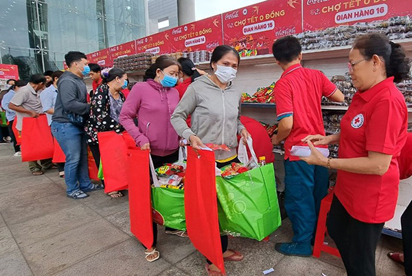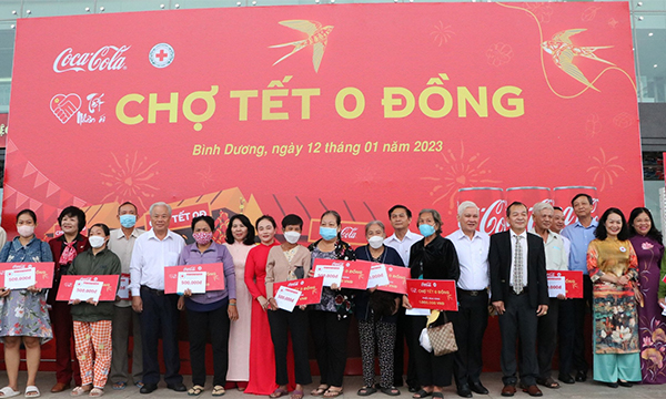Trước đó, tại sảnh ngoài Trung tâm Hội nghị và Triển lãm tỉnh đã diễn ra phiên “Chợ Tết 0 đồng”. Phiên chợ do Hội CTĐ Việt Nam phối hợp với Hội CTĐ tỉnh Bình Dương tổ chức thực hiện. 500 người dân nghèo, khó khăn, công nhân lao động, người yếu thế trên địa bàn tỉnh đã được hỗ trợ đi chợ Tết “0 đồng”. Ngoài phiếu mua hàng có trị giá 1 triệu đồng, mỗi người đi chợ còn được hỗ trợ thêm 500 ngàn đồng tiền mặt. Tổng trị giá thực hiện phiên chợ là 750 triệu đồng, trong đó: Trung ương Hội CTĐ Việt Nam vận động Công ty Coca – Cola Việt Nam hỗ trợ 500 triệu đồng hàng hóa, Hội CTĐ tỉnh hỗ trợ 250 triệu đồng tiền mặt.