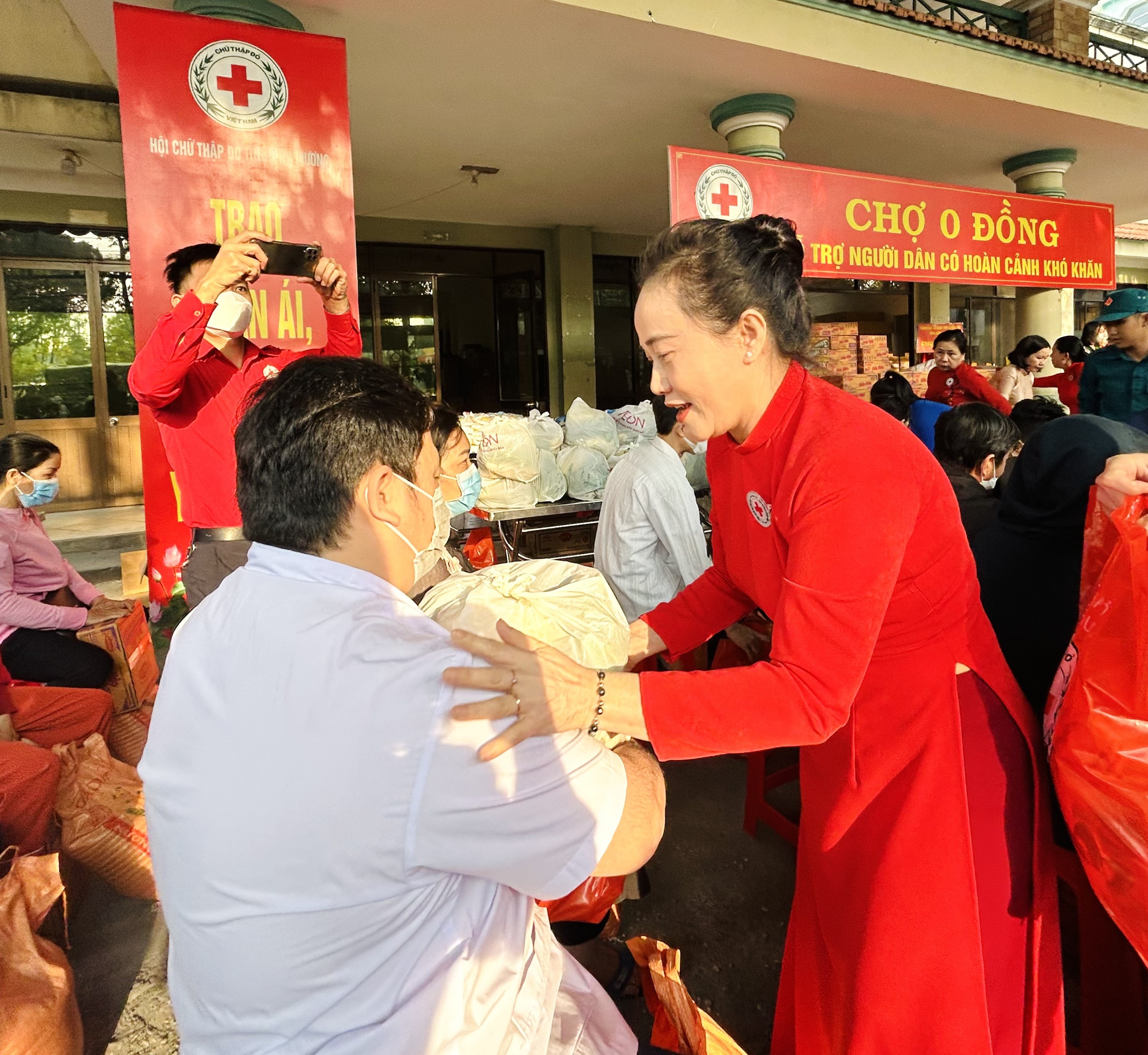 Nhằm góp phần chia sẻ một phần khó khăn với người dân, Hội Chữ thập đỏ tỉnh Bình Dương đã phát phiếu đi chợ cho 500 người khuyết tật, lao động tự do, người dân có hoàn cảnh khó khăn, người bán vé số lẽ trên địa bàn TP.Thủ Dầu Một, TP.Thuận An và TX.Tân Uyên. Mỗi phiếu đi chợ được hỗ trợ nhiều hàng hóa, nhu yếu phẩm thiết yếu, trị giá trên 1,2 triệu đồng. Cũng tại phiên chợ, Hội Bình Dương tỉnh đã trao hỗ trợ kinh phí và hàng hóa cho Hội Chữ thập đỏ 9 huyện, thị xã, thành phố. Theo đó, mỗi huyện, thị, thành phố được hỗ trợ kinh phí và hàng hóa để tổ chức “Chợ 0 đồng” trị giá 200 triệu đồng. Tổng trị giá thực hiện phiên chợ ngày hôm nay trên 2,4 tỷ đồng.