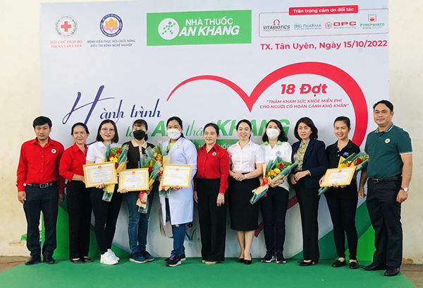 Tại chương trình Hội Chữ thập đỏ thị xã Tân Uyên phối hợp Công ty TNHH DVTM Tân Cường Minh (TP Hồ Chí Minh), Công ty Cổ phần dược phẩm An Khang Pharma (TP Hồ Chí Minh), Bệnh viện phục hồi chức năng điều trị bệnh nghề nghiệp (TP Hồ Chí Minh) khám bệnh cấp thuốc miễn phí và tặng quà cho 500 người nghèo, neo đơn, người có hoàn cảnh khó khăn, người già, người khuyết tật trên địa bàn thị xã.