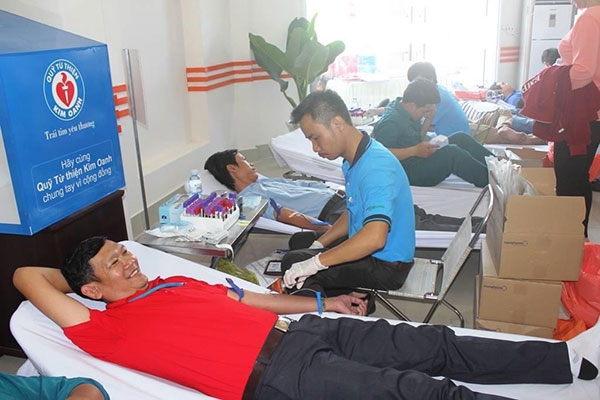 Anh Trần Tấn Phong tham gia hiến máu.