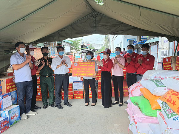 Thời gian qua, cùng với Ủy ban Mặt trận Tổ quốc Việt Nam tỉnh, Hội Chữ thập đỏ tỉnh đã rất tích cực kêu gọi vận động nguồn lực để hỗ trợ cho công tác phòng, chống dịch của tỉnh. Từ nguồn lực vận động được, trong những ngày qua, Hội Chữ thập đỏ tỉnh đã phân phối, thăm hỏi, động viên, hỗ trợ hàng hóa cho một số khu vực phong tỏa, cách ly y tế trên địa bàn TP.Thủ Dầu Một. TP.Thuận An và TP.Dĩ An.