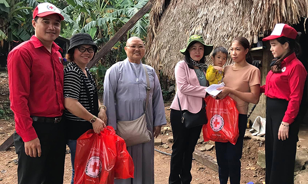 Đoàn do bà Nguyễn Thị Lệ Trinh, Chủ tịch Hội Chữ thập đỏ tỉnh lầm Trưởng đoàn đã phối hợp với Ban Từ thiện Giáo hội Phật giáo Việt Nam tỉnh Bình Dương và các mạnh thường quân trực tiếp đi đến thăm những xã chịu thiệt hại nặng nề trong thời gian qua.