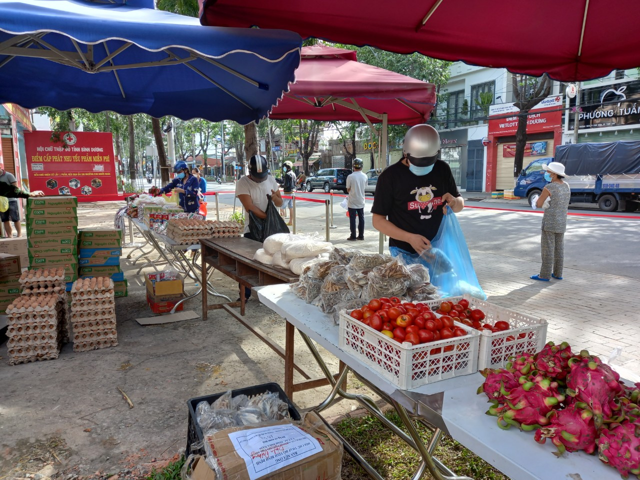 Để “không bỏ lại ai phía sau”, Hội Chữ thập đỏ tỉnh đã nhanh chóng triển khai các hoạt động hỗ trợ thiết thực, trong đó có mô hình phiên chợ “0 đồng”. Với 33 phiên chợ, hàng ngày, tại điểm hỗ trợ nhân đạo của Hội Chữ thập đỏ tỉnh trên đường 30-4 ở phường Phú Hòa, TP. Thủ Dầu Một đều diễn ra phiên chợ ý nghĩa này để hỗ trợ các đối tượng khó khăn. Một trong những đối tượng được đặc biệt quan tâm hỗ trợ đi chợ “0 đồng” đó là công nhân, người lao động ở trọ bị ảnh hưởng dịch bệnh.