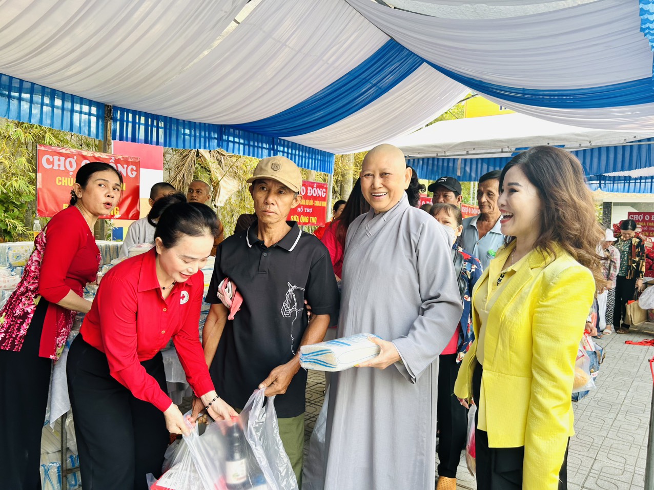 Với 38 gian hàng, phiên chợ đã hỗ trợ cho 1.000 công nhân, người khiếm thị và người dân có hoàn cảnh khó khăn những phần quà ý nghĩa. Mỗi phần quà trị giá hơn 1 triệu đồng, gồm nhiều nhu yếu phẩm thiết yếu cùng những hàng hóa tết mang niềm vui ấm áp đến với những người hỗ trợ. Tổng kinh phí thực hiện chương trình hơn 1 tỷ đồng, do tăng ni các chùa, các phật tử, doanh nghiệp và nhà hảo tâm cùng chung sức ủng hộ phiên “Chợ 0 đồng” đợt này.