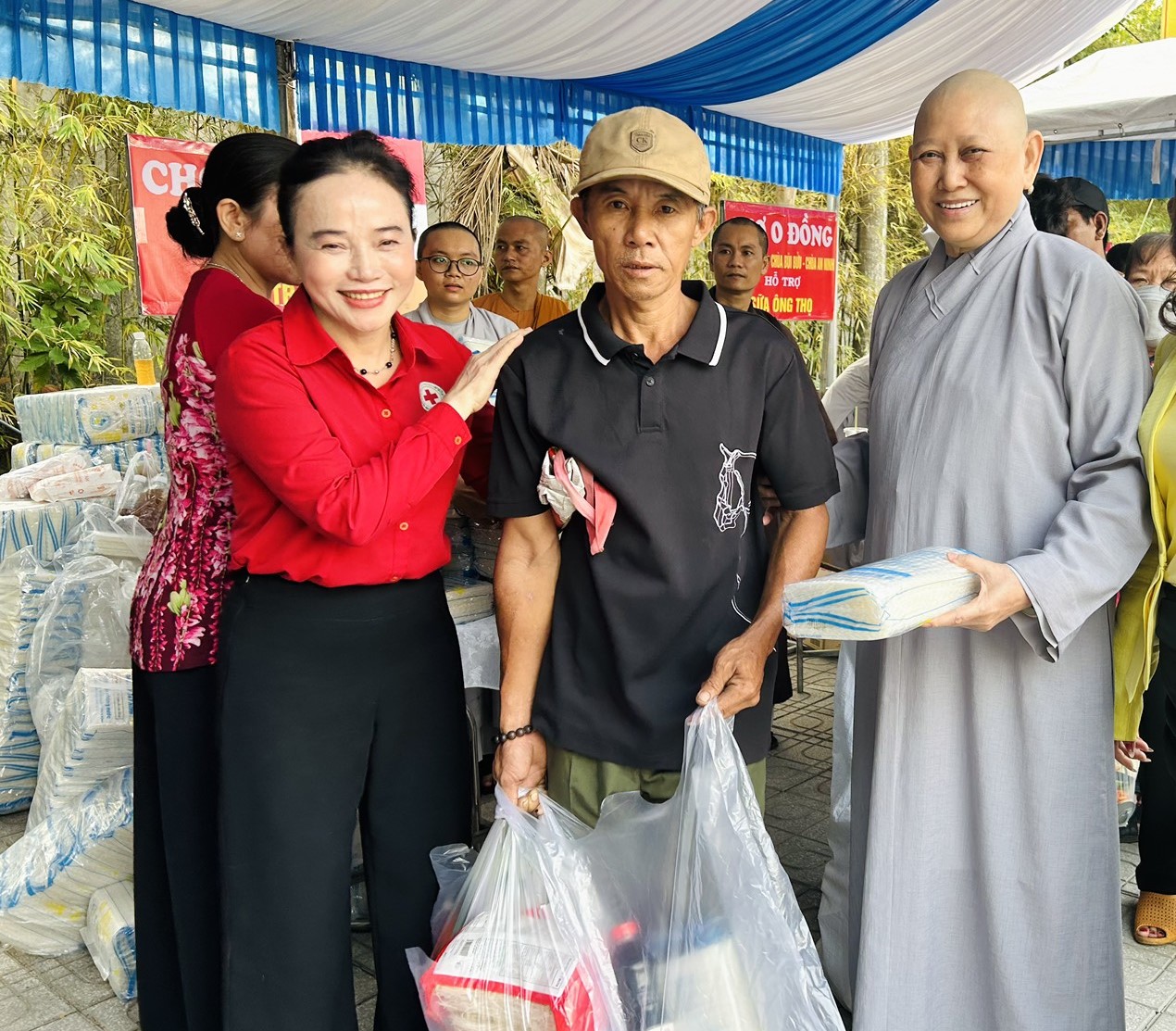 Hòa thượng Thích Huệ Thông, Phó Chủ tịch Hội đồng trị sự, kiêm Trưởng Ban Pháp chế Trung ương GHPG Việt Nam, Trưởng Ban Trị sự GHPG Việt Nam tỉnh, chia sẻ Ban tổ chức đã vận động nhiều doanh nghiệp, nhà hảo tâm và các tăng ni, phật tử cùng chung sức để thực hiện phiên chợ với mong muốn đem đến cho bà con có hoàn cảnh khó khăn một mùa xuân nhiều yêu thương, đùm bọc chia sẻ. Mỗi phần quà dù không nhiều, nhưng tinh thần, trái tim yêu thương sẽ được lan toả qua hoạt động ý nghĩa này. Hoà thượng mong bà con được nhận quà sẽ tiếp tục cố gắng để vươn lên, có cuộc sống ấm no hơn, an lạc hơn.