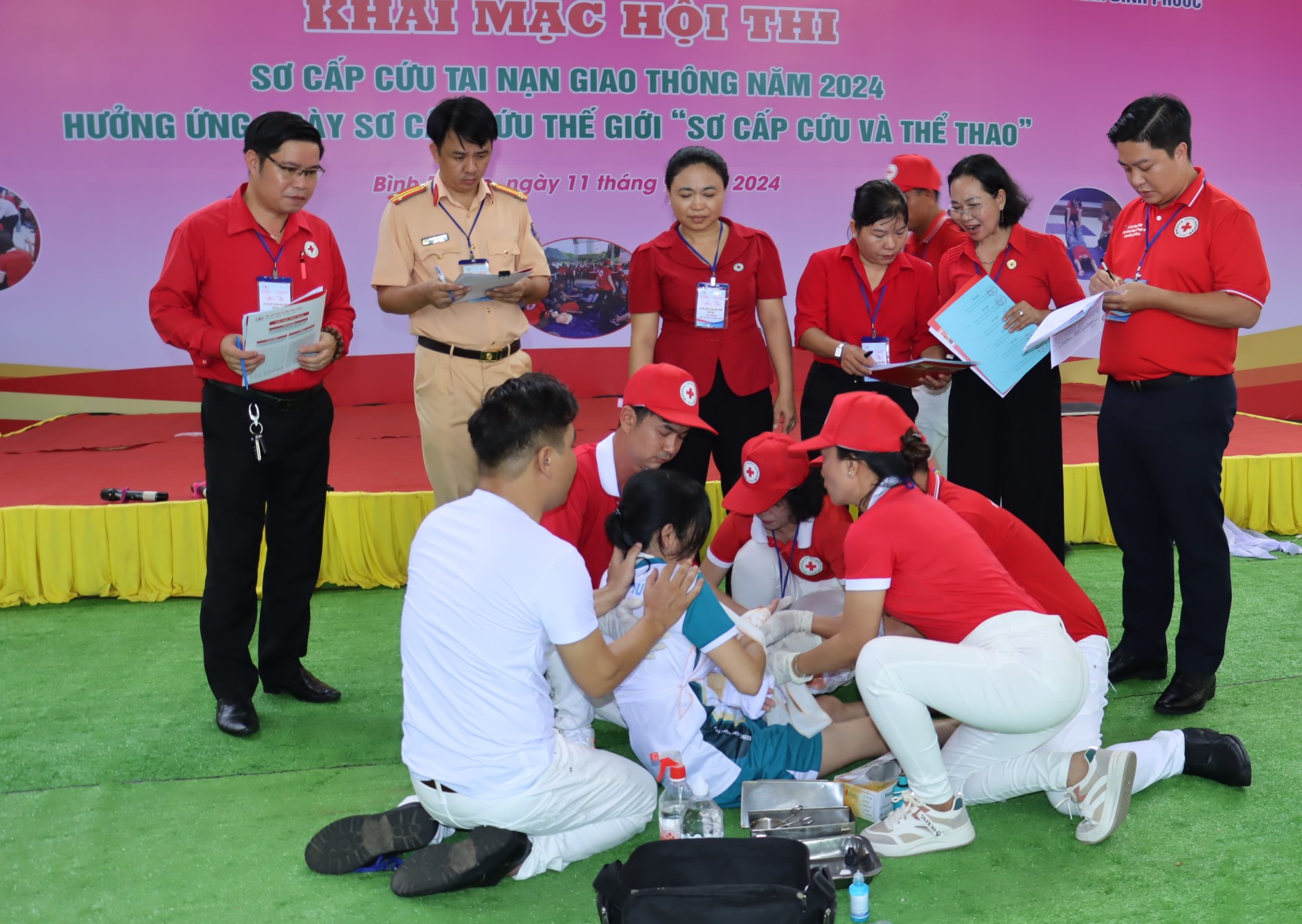 Phát biểu bế mạc Hội thi, ông Nguyễn Tấn Hưng, Chủ tịch Hội Chữ thập đỏ tỉnh Bình Phước cho biết: Đây là một trong những hoạt động thường niên của Hội nhằm hưởng ứng ngày Sơ cấp cứu thế giới năm 2024 với chủ đề “Sơ cấp cứu và Thể thao”, đồng thời gửi đến mọi người những thông điệp “Sơ cấp cứu là một hành động nhân đạo”, “Làm chủ kỹ năng sơ cấp cứu để đảm bảo an toàn cho chính bạn và mọi người trong các hoạt động thể dục, thể thao”, “Ai cũng có thể học kỹ năng sơ cấp cứu, không phân biệt tuổi tác, hoàn cảnh, giới tính”. Đây cũng là dịp để cán bộ, hội viên, tình nguyện viên, thanh thiếu niên Chữ thập đỏ thể hiện kỹ năng xử lý tình huống tai nạn hàng loạt và sơ cấp cứu ban đầu tại cộng đồng. Đồng thời lan toả tinh thần, ý thức chấp hành giao thông đến với cộng đồng.