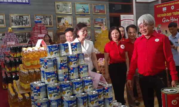 Các đại biểu tham quan gian hàng tại Chợ nhân đạo với Chủ đề “Trăng sáng vùng biên”
