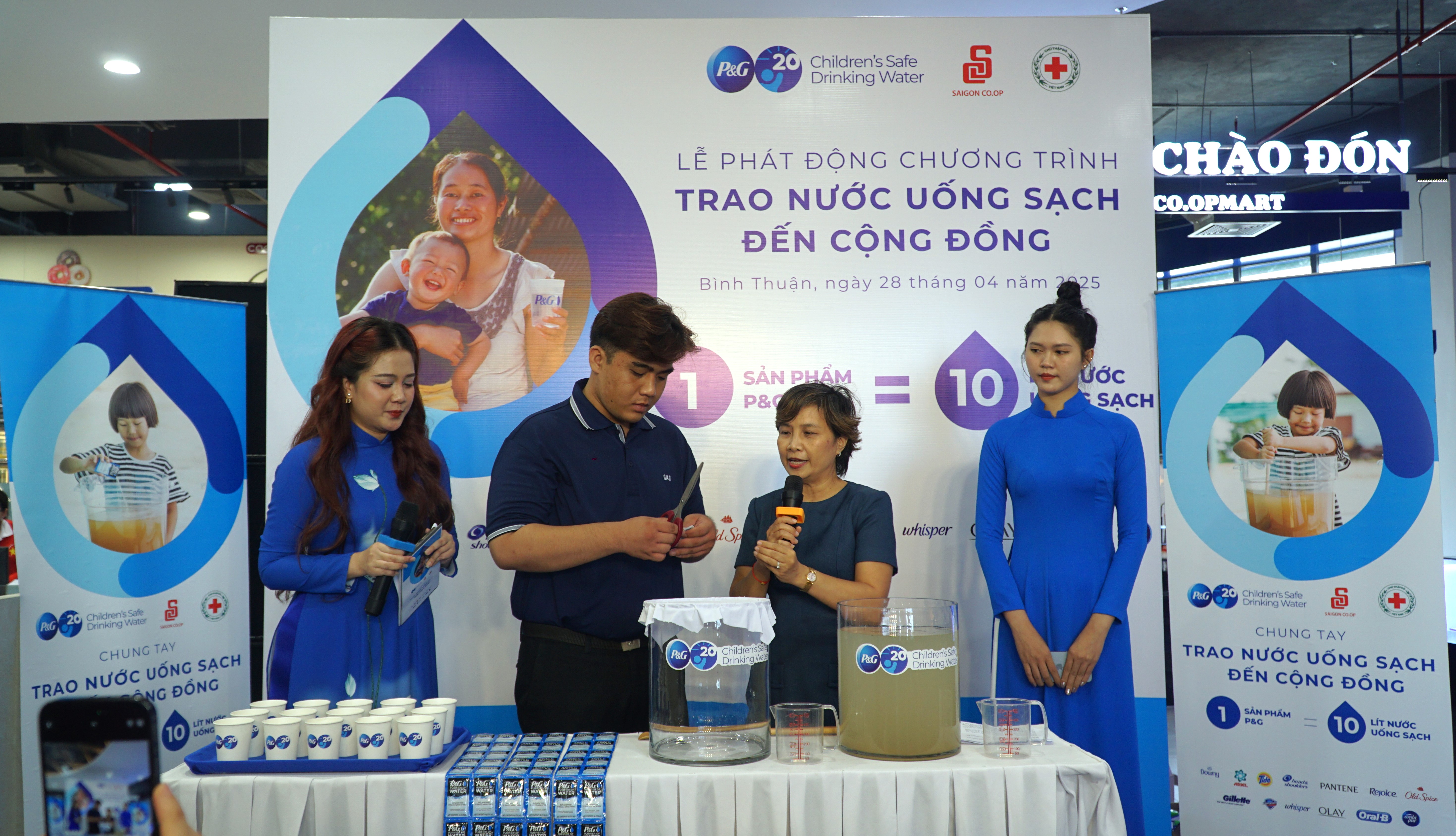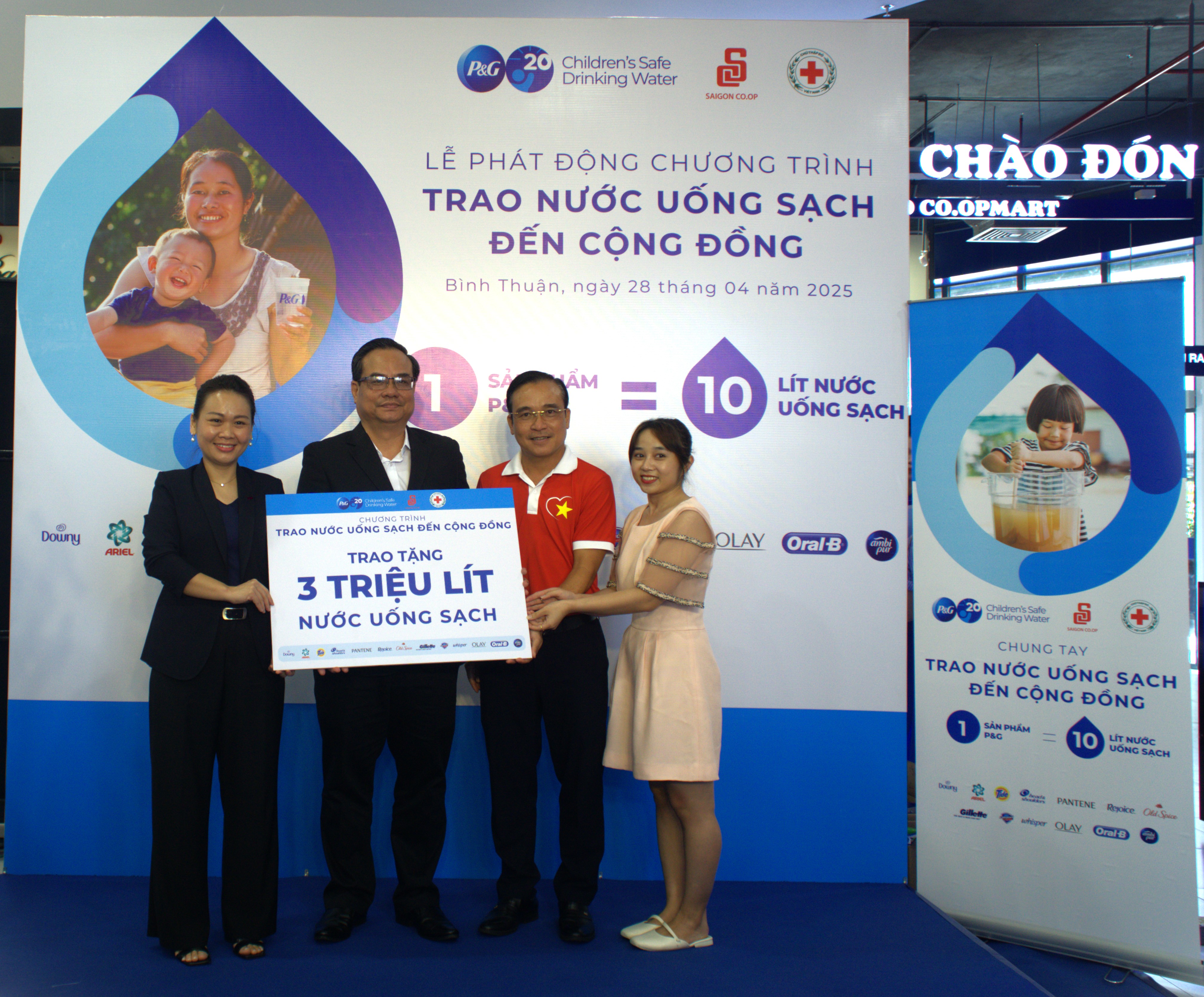 Tại sự kiện, Công ty P&G Việt Nam và Saigon Co.op đã trao tặng 3 triệu lít nước uống sạch thông qua Trung ương Hội Chữ thập đỏ Việt Nam. Hưởng ứng Tháng Nhân đạo, hai doanh nghiệp cũng trao tặng các phần quà ý nghĩa dành cho người dân có hoàn cảnh khó khăn: Saigon Co.op tặng 900 phần quà trị giá 300 triệu đồng, trong khi Công ty P&G Việt Nam trao tặng các sản phẩm chăm sóc cá nhân và vệ sinh trị giá 500 triệu đồng.
