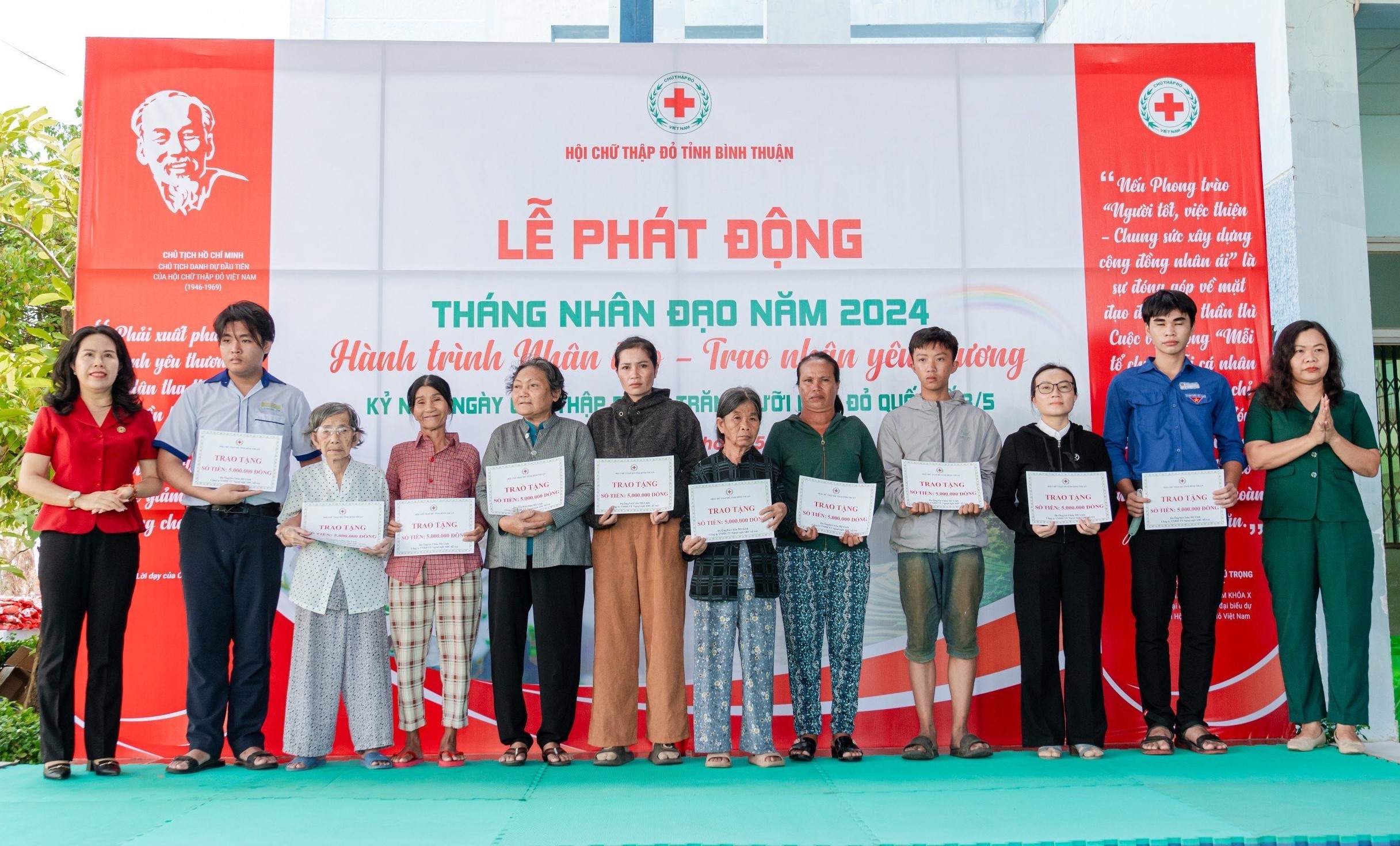 Tại Lễ phát động, Hội Chữ thập đỏ tỉnh đã tiếp nhận sự ủng hộ từ các nhà tài trợ và đăng ký vận động trợ giúp từ Hội Chữ thập đỏ các huyện, thị, thành hội. Đồng thời, trao tặng 15 suất học bổng nhằm động viên các em học sinh vượt khó vươn lên học tập; trao 60 suất quà cho các gia đình có hoàn cảnh đặc biệt khó khăn.