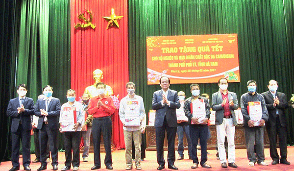 Trong dịp này, đoàn đã tặng 100 suất quà, mỗi suất 650.000đ gồm quà và tiền mặt, tổng giá trị 65 triệu đồng. Để đảm bảo phòng, tránh dịch bệnh Covid-19, tại chương trình đã trao 20 suất quà cho người nghèo, nạn nhân chất độc da cam xã Tiên Tân và phường Lam Hạ; số còn lại Hội Chữ thập đỏ và Hội Nạn nhân chất độc da cam/dioxin thành phố Phủ Lý sẽ trao tặng cho người dân theo xã, phường.