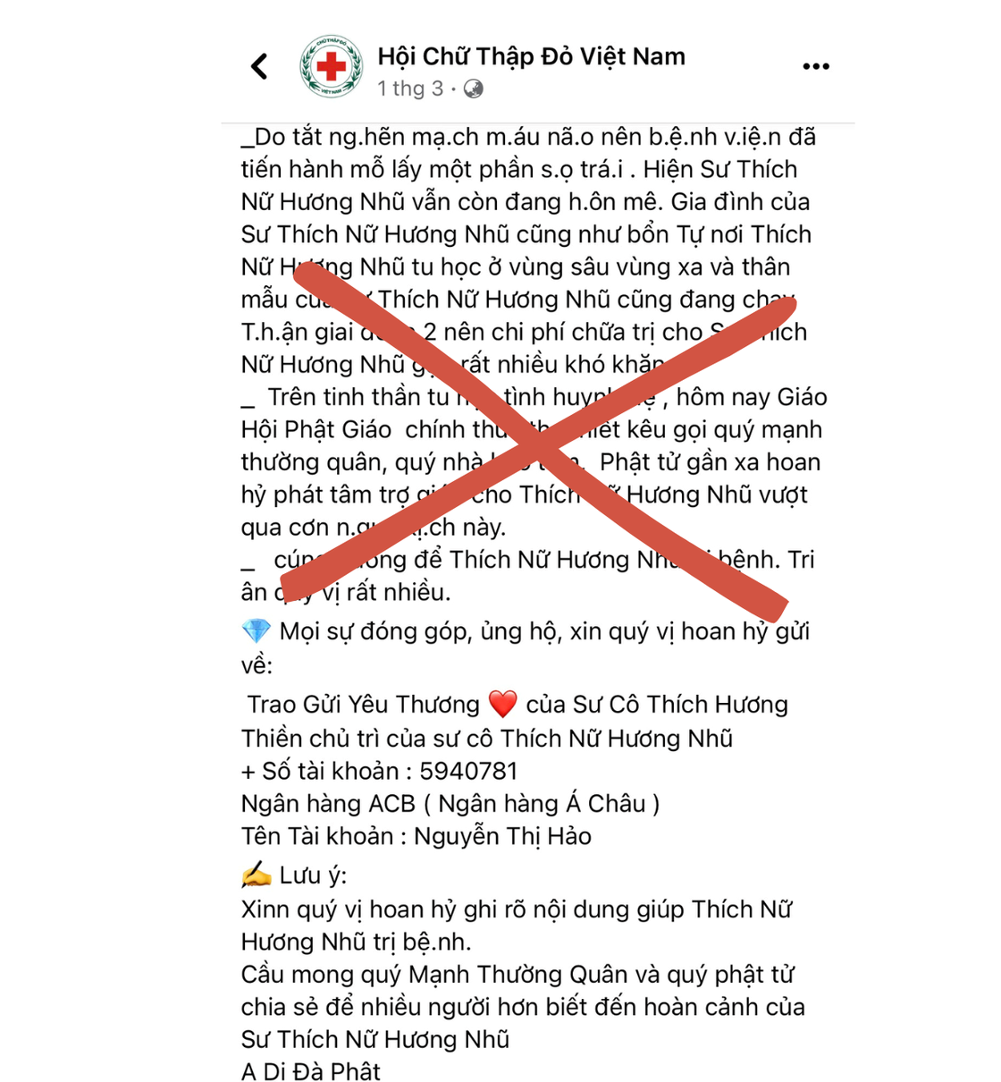 Hội Chữ thập đỏ Việt Nam chỉ có 01 trang Fanpage địa chỉ: facebook.com/redcross.org.vn mọi người nâng cao cảnh giác