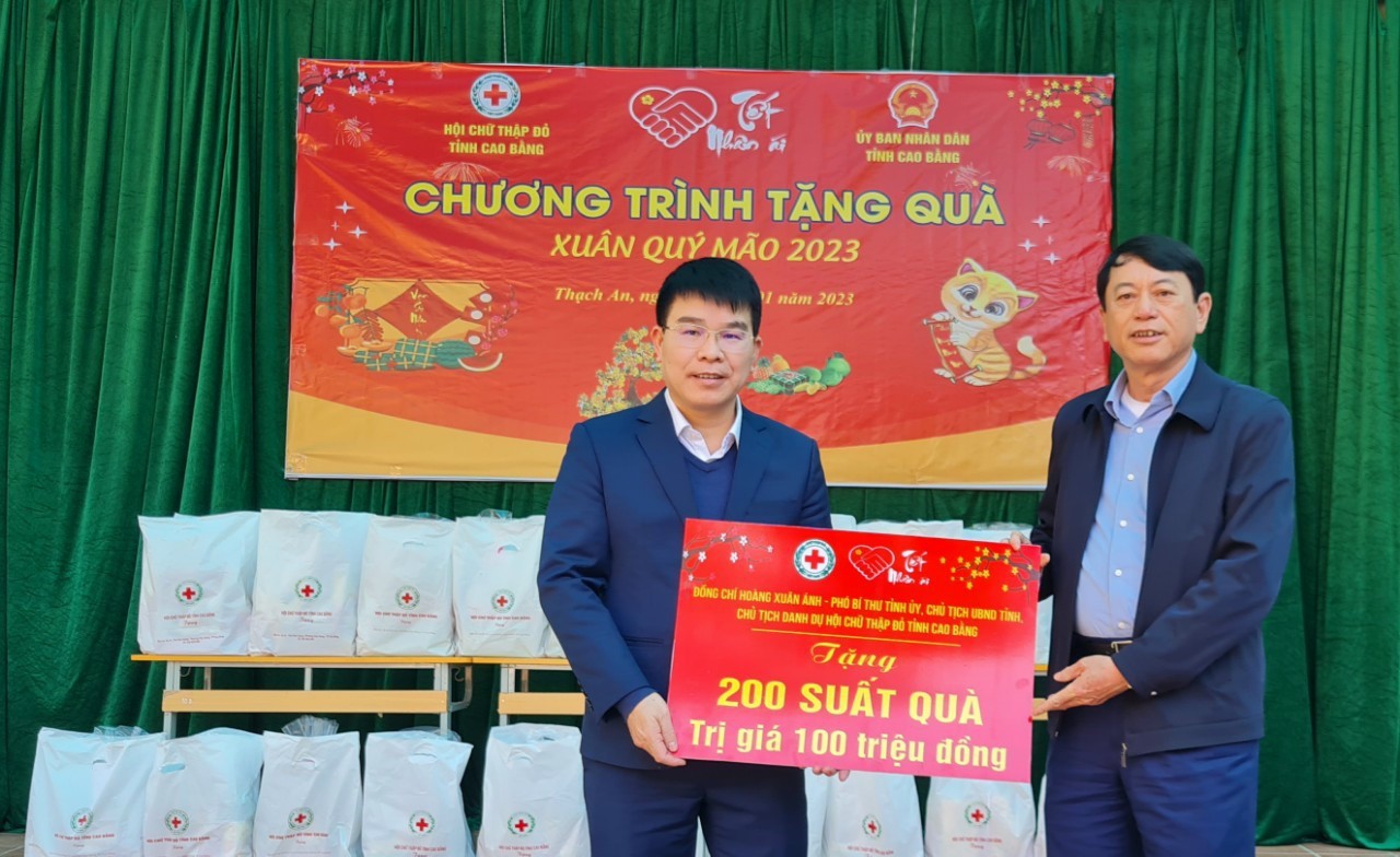 Cụ thể, chương trình đã trao 100 suất cho hộ nghèo có hoàn cảnh khó khăn tại 4 xã: Canh Tân, Minh Khai, Quang Trọng, Đức Thông; ủy quyền cho huyện Thạch An trao 200 suất quà Tết tặng các hộ nghèo, trị giá 500 nghìn đồng/suất. Tổng giá trị chương trình 170 triệu đồng.