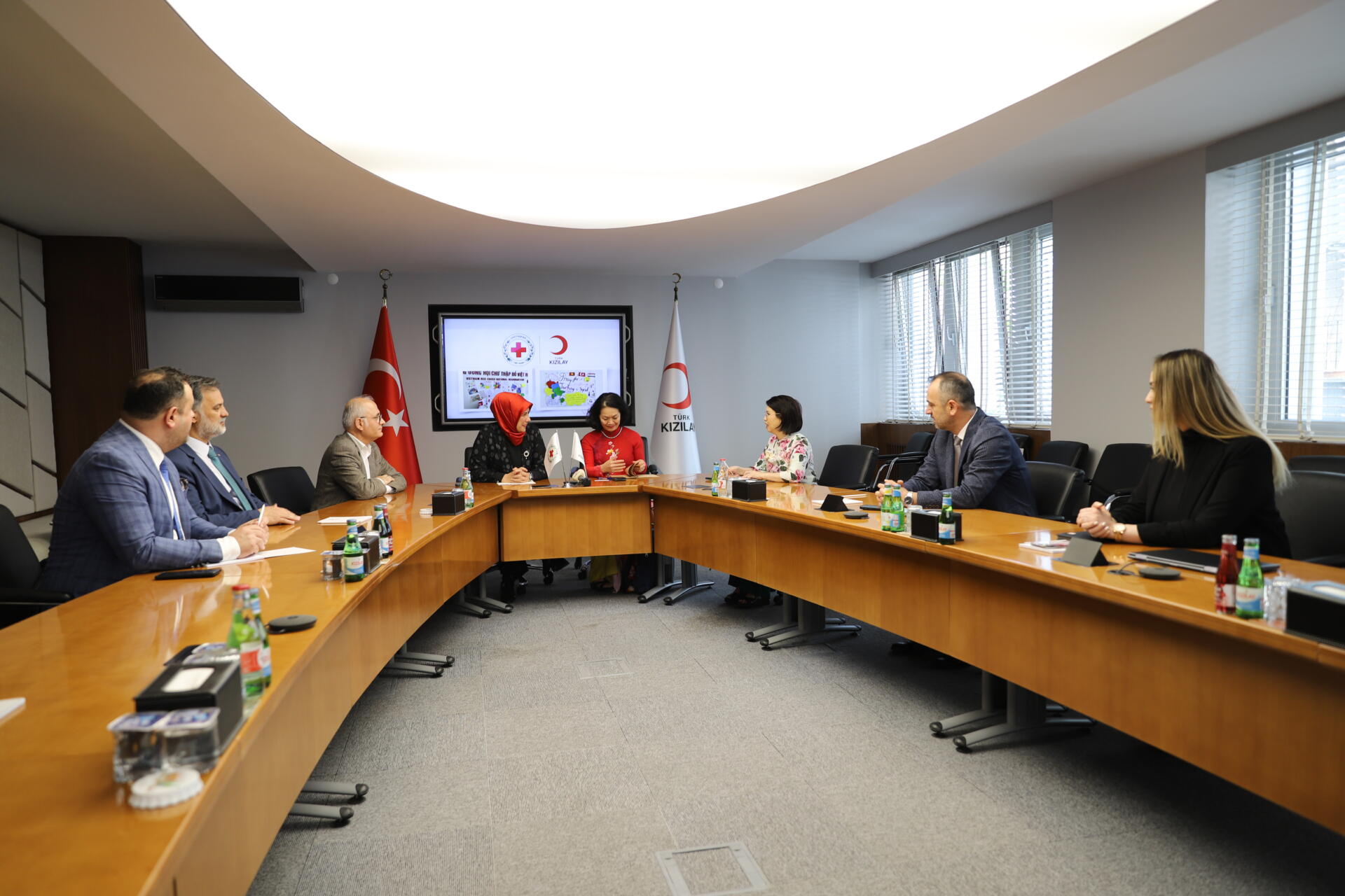 Chủ tịch Hội Chữ thập đỏ Việt Nam và thành viên đoàn công tác làm việc tại Trung tâm Quản lý thảm hoạ của Hội Trăng lưỡi liềm đỏ Thổ Nhĩ Kỳ.
