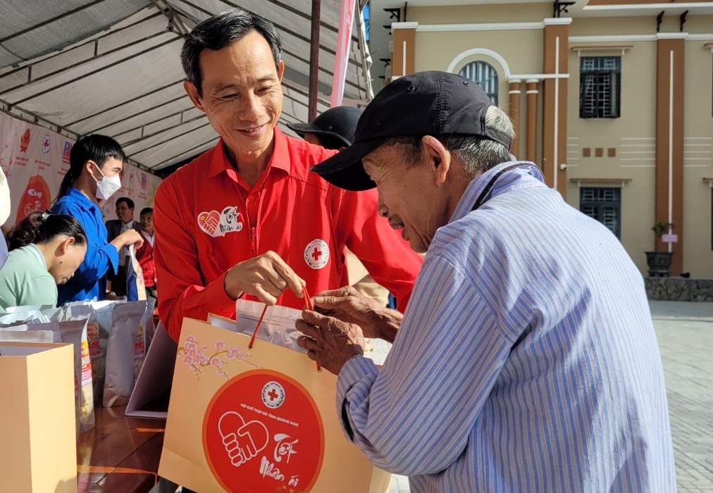 Hội Chữ thập đỏ tỉnh Quảng Nam trao quà tết cho người dân xã Tiên Châu, huyện Tiên Phước