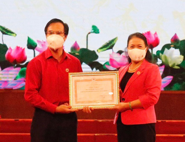 Trao tặng Bằng khen của Trung ương Hội Chữ thập đỏ Việt Nam cho Hội Chữ thập đỏ