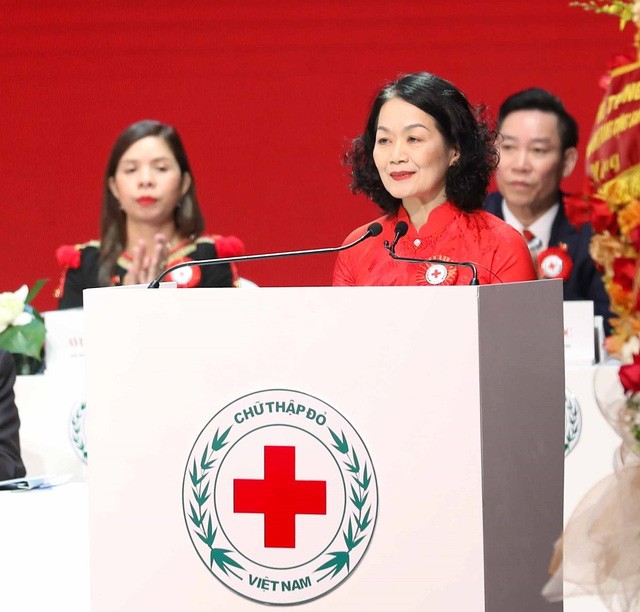 Chủ tịch Hội Chữ thập đỏ Việt Nam Bùi Thị Hòa phát biểu khai mạc Đại hội