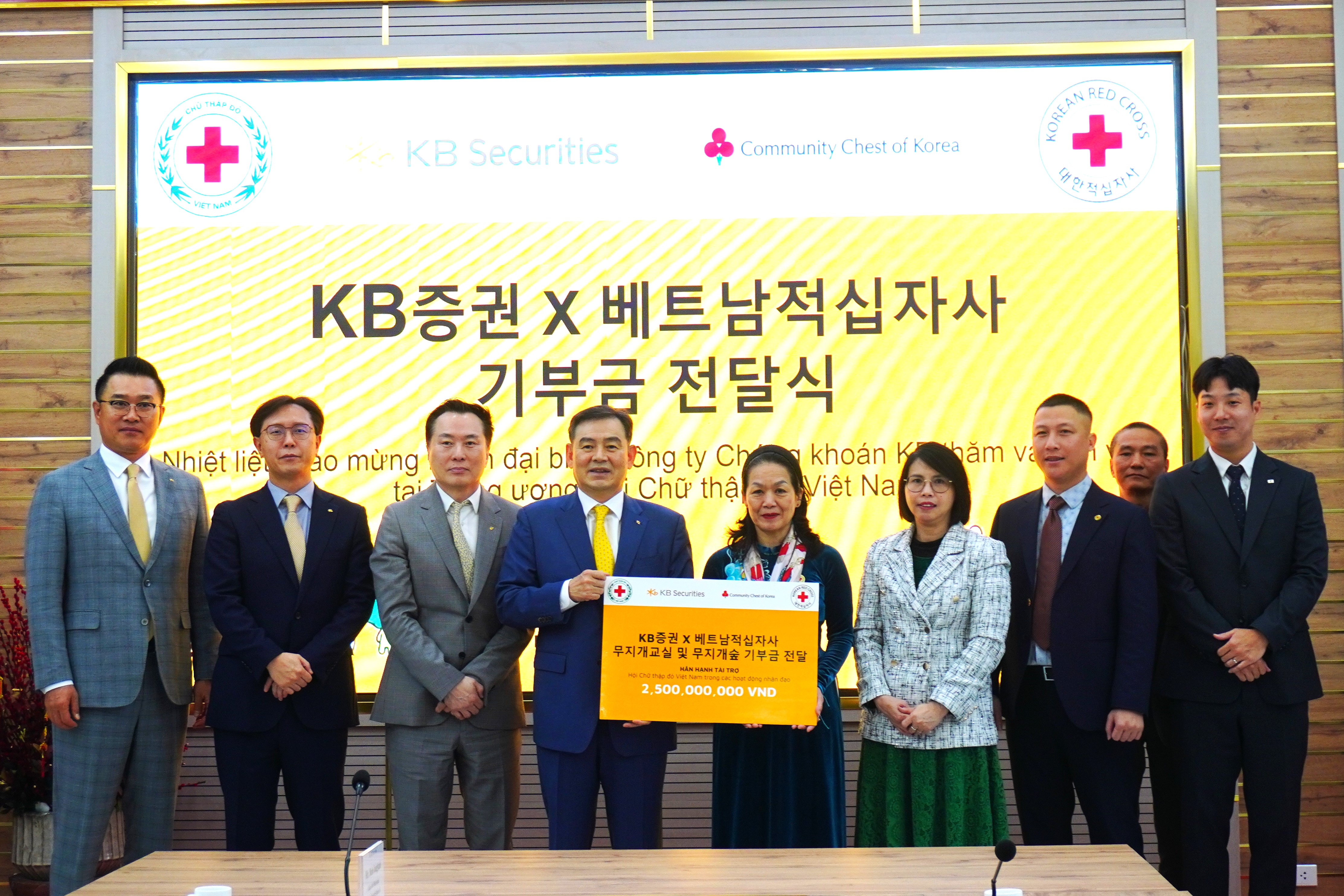 Công ty Chứng khoán KB, thuộc tập đoàn tài chính hàng đầu Hàn Quốc, không chỉ nổi bật trong lĩnh vực tài chính mà còn rất tích cực tham gia vào các hoạt động nhân đạo. Công ty đã và đang phối hợp chặt chẽ với Hội Chữ thập đỏ Hàn Quốc trong các hoạt động hỗ trợ cộng đồng tại các khu vực mà công ty hoạt động. Những nỗ lực này nhằm thúc đẩy các chương trình giáo dục, bảo vệ môi trường và ứng phó với biến đổi khí hậu.