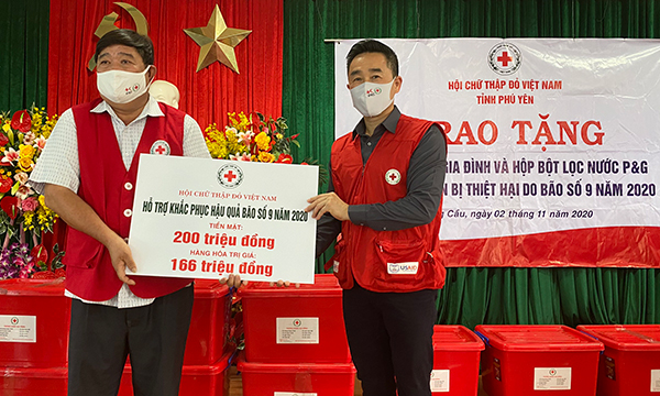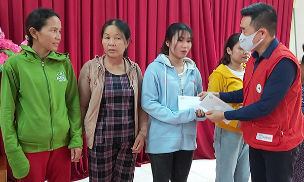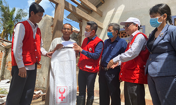 Ngày 2/11/2020, cấp phát tiền hàng cứu trợ của Trung ương Hội tại xã Xuân Lộc, thị xã Sông Cầu, tỉnh Phú Yên