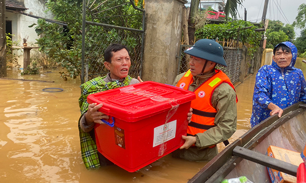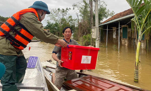Tại Quảng Bình, Hội Chữ thập đỏ Việt Nam đã chuyển hàng cứu trợ gồm: 500 triệu đồng, 400 thùng hàng gia đình, 300 túi hàng gia đình, 300 hộp bột lọc nước.