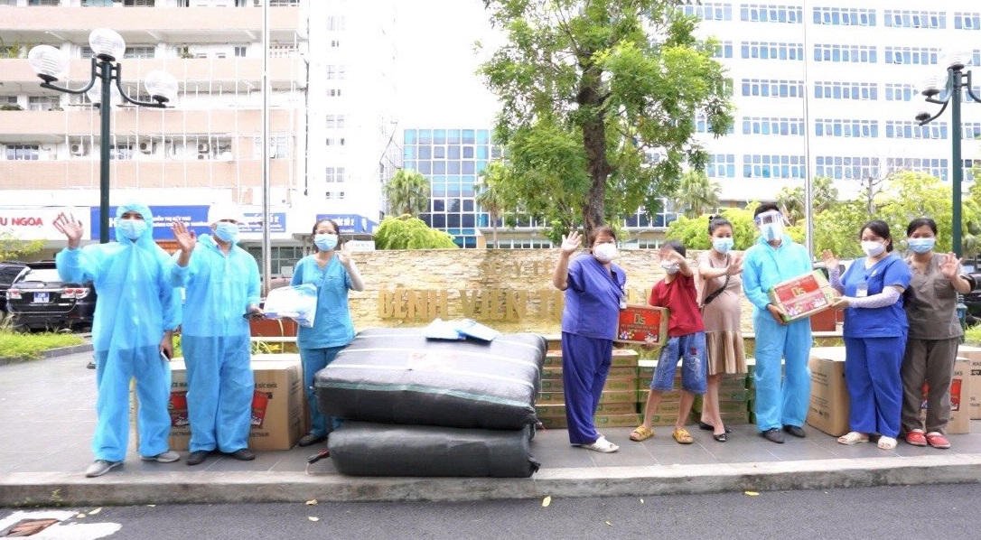 Đồng thời, nhóm đã trao tặng đồ bảo hộ, kính mắt bảo vệ, nước rửa tay, khẩu trang y tế cho đội ngũ y bác sĩ, lực lượng các chốt kiểm dịch; Trao sữa cho các bác sĩ Khoa sản 2 (Bệnh viện Thanh Nhàn) để hỗ trợ cho các sản phụ đang điều trị tại khoa.
