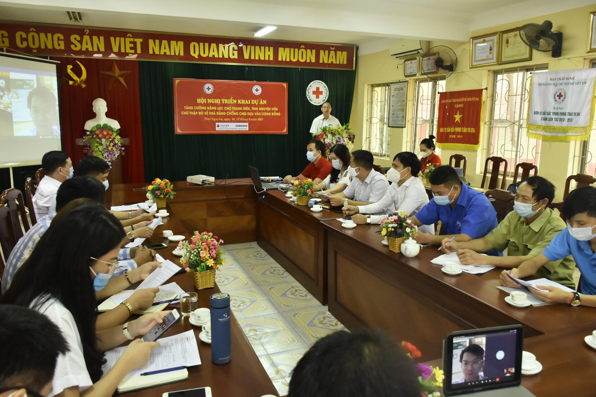 Quang cảnh Hội nghị Dự án do Hội Chữ thập đỏ Hàn Quốc tài trợ, phối hợp với Trung ương Hội Chữ thập đỏ Việt Nam thực hiện trong 3 năm (từ tháng 4/2021-31/3/2024), tổng kinh phí 1,5 triệu USD (trên 34 tỷ đồng) tại 3 tỉnh, thành phố: Hồ Chí Minh, Thái Nguyên,…