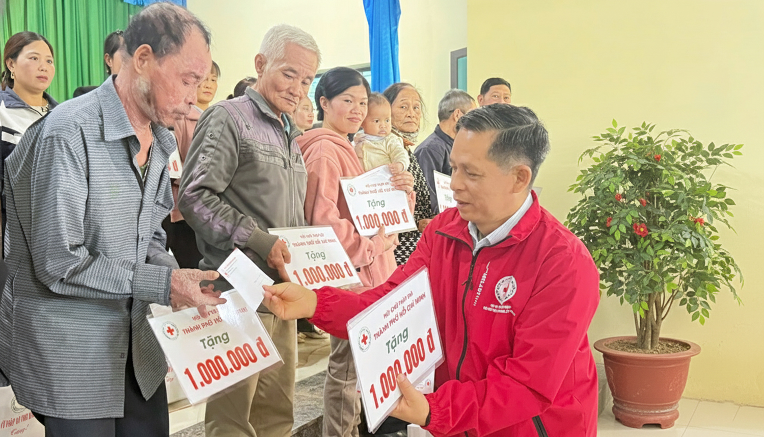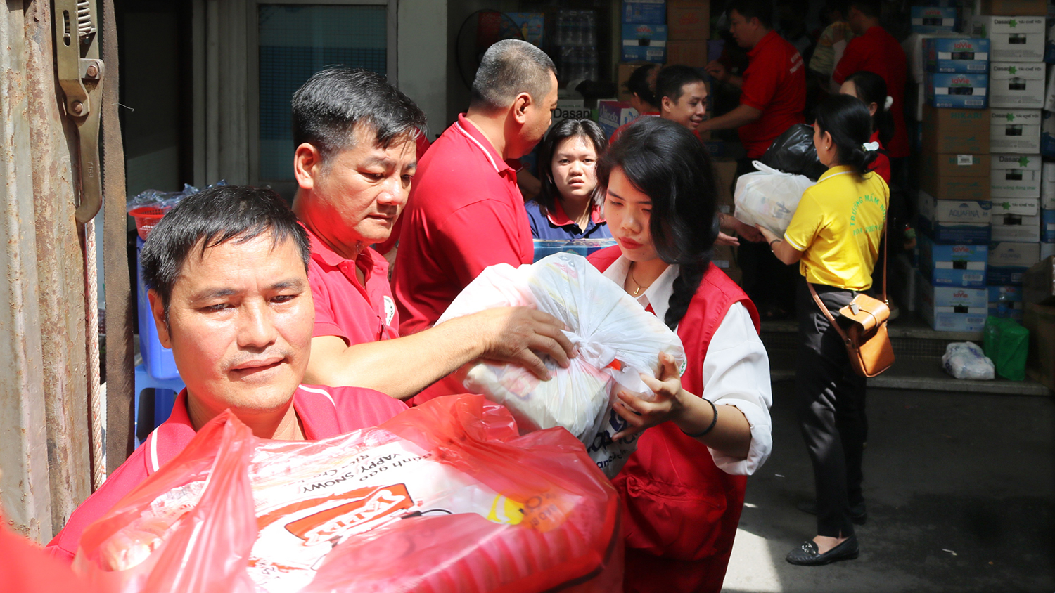 Hình ảnh các tình nguyện viên trao hỗ trợ cho người dân: