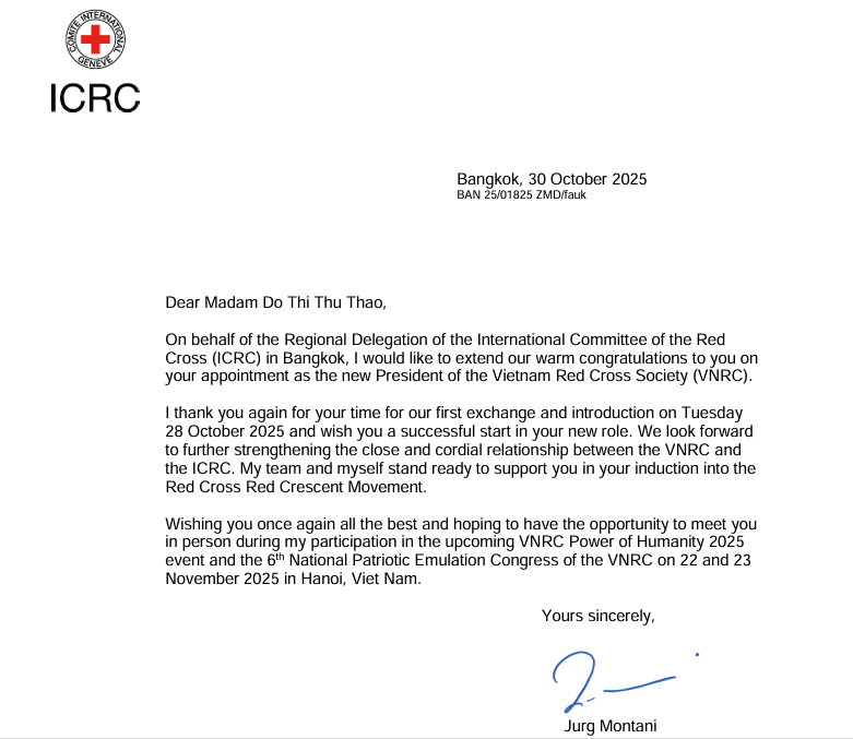 Trong thư chúc mừng gửi từ Giơ-ne-vơ, ông Jagan Chapagain, Tổng Thư ký và bà Kate Forbes, Chủ tịch Hiệp Hội Chữ thập đỏ và Trăng lưỡi liềm đỏ quốc tế (IFRC) bày tỏ tin tưởng dưới sự lãnh đạo của Chủ tịch Đỗ Thị Thu Thảo, Hội Chữ thập đỏ Việt Nam sẽ tiếp…