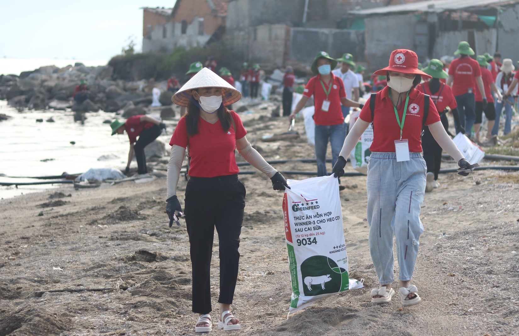 Thanh niên, tình nguyện viên Chữ thập đỏ chung tay làm sạch biển