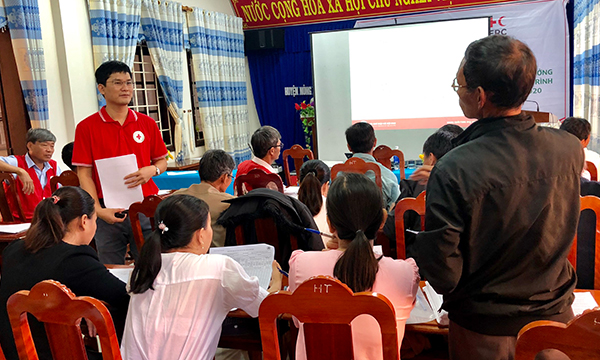 Hướng dẫn viên và học viên trao đổi tại lớp tập huấn Dự án Cứu trợ khẩn cấp” do Hiệp Hội Chữ thập đỏ – Trăng lưỡi liềm đỏ quốc tế tài trợ cho 4 địa phương là: Quảng Nam, Quảng Trị, Quảng Bình và Thừa Thiên Huế. Dự án can thiệp vào các lĩnh vực: cấp…