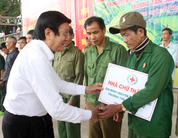 Nguyên Chủ tịch nước Trương Tấn Sang dự tổng kết chương trình làm nhà Chữ thập đỏ cho CCB Hà Giang