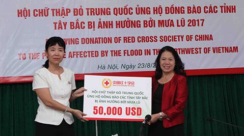 Tiếp nhận 50.000 đô-la Mỹ của Hội Chữ thập đỏ Trung Quốc ủng hộ nhân dân các tỉnh Tây Bắc Việt Nam khắc phục hậu quả mưa lũ