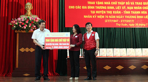 Nhân kỷ niệm 70 năm Ngày Thương binh – Liệt sĩ, ngày 26/7, Chủ tịch Trung ương Hội Chữ thập đỏ Việt Nam Nguyễn Thị Xuân Thu đã đến thăm hỏi và trao tặng 50 suất quà, mỗi suất trị giá 500.000 đồng và 20 căn nhà, mỗi căn trị giá 50 triệu đồng cho…