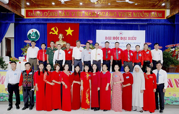 Lãnh đạo Hội Chữ thập đỏ tỉnh chụp hình lưu niệm cùng Ban chấp hành huyện Đạ Huoai khóa VIII,