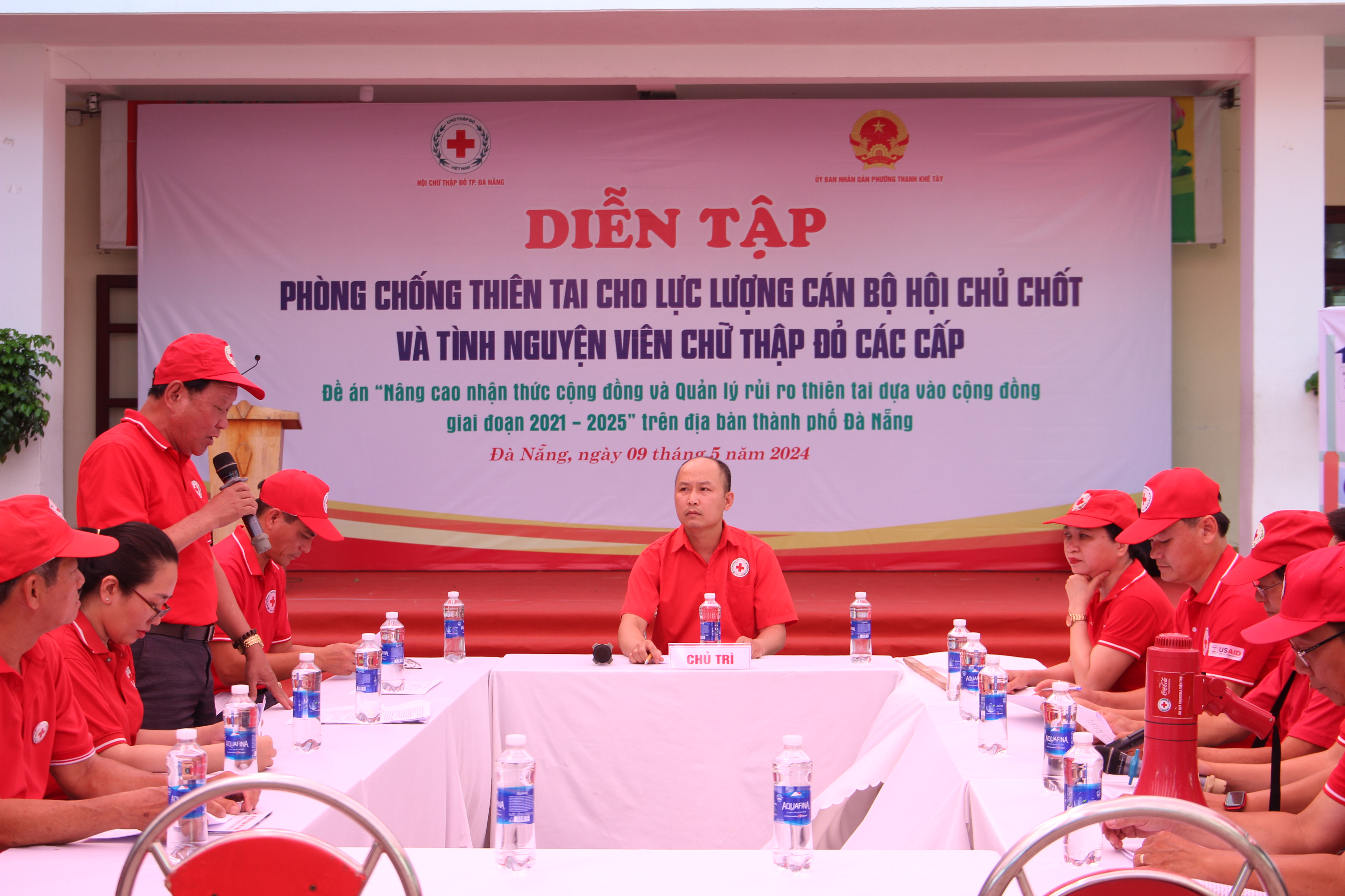 Với tình huống giả định là cơn bão số 3 với tên quốc tế là SƠN TRA với tốc độ gió cấp 12 giật trên cấp 15 dự kiến sẽ đổ bộ vào các tỉnh Trung Trung bộ với tâm bão dự kiến là các tỉnh Thừa Thiên Huế, Đà Nẵng và Quảng Nam vào ngày 09/5/2024. Nhận được Công điện của Chủ tịch UBND thành phố Đà Nẵng và Ban Chỉ huy Phòng, chống thiên tai, Tìm kiếm cứu nạn và Phòng thủ dân sự thành phố; Hội Chữ thập đỏ thành phố tổ chức họp triển khai công điện của UBNDTP và kích hoạt kế hoạch hành động sớm ứng phó với gió do bão của Hội Chữ thập đỏ TP. Đà Nẵng.